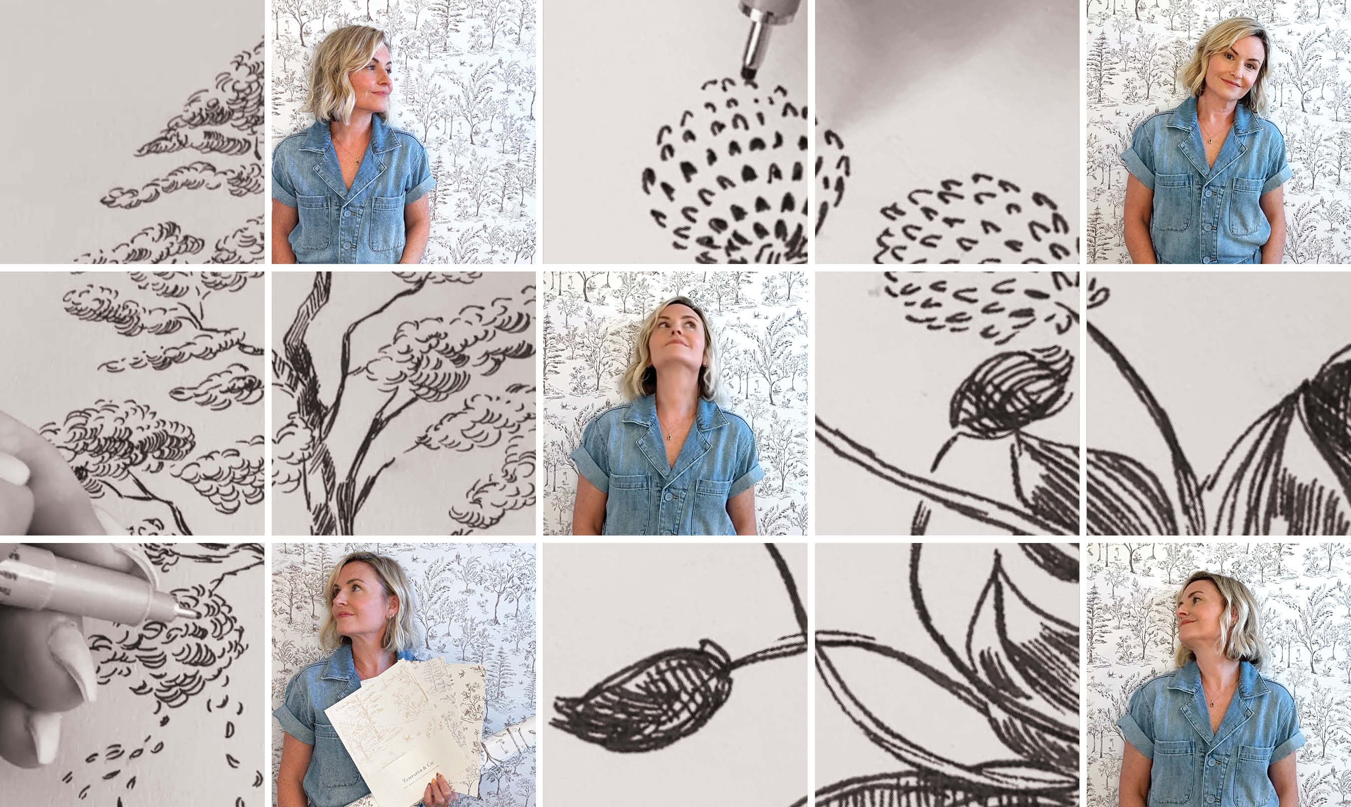 When it came time to bring our newest wallpaper design to life, we knew we wanted something that felt both grounded and ethereal, rooted in tradition but with a fresh, modern look. Enter Hillary Bott Sorrentino, a first-time collaborator with a talent for crafting intricate, hand-drawn illustrations that whisper stories from the past while feeling perfectly suited for the present.