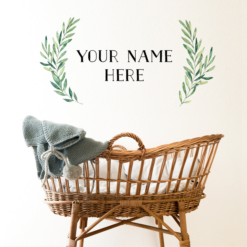 For easy application, the laurel decal is printed on clear material which includes a slight border meant to seamlessly blend in with most surfaces. This custom name decal is reusable and will remove cleanly, leaving no residue behind.