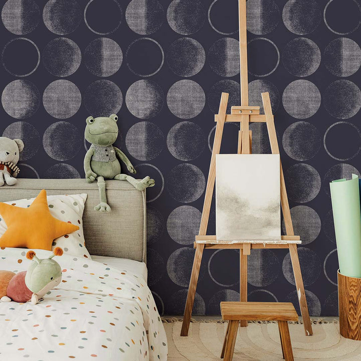 Hoping to make an extraordinary style statement? Perhaps one that’s out of this world? Our moons removable wallpaper eclipses all others with a minimalist design that makes maximum impact. From waxing to waning, the moon’s many phases are rendered in hues that create a celestial glow. Feeling drawn in? You should be. The bella luna’s magnetic pull is irresistible. Moons is available in the following color choices: neutral & ivory and midnight blue & white.