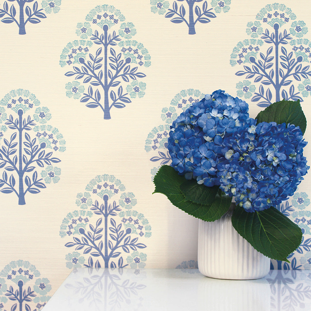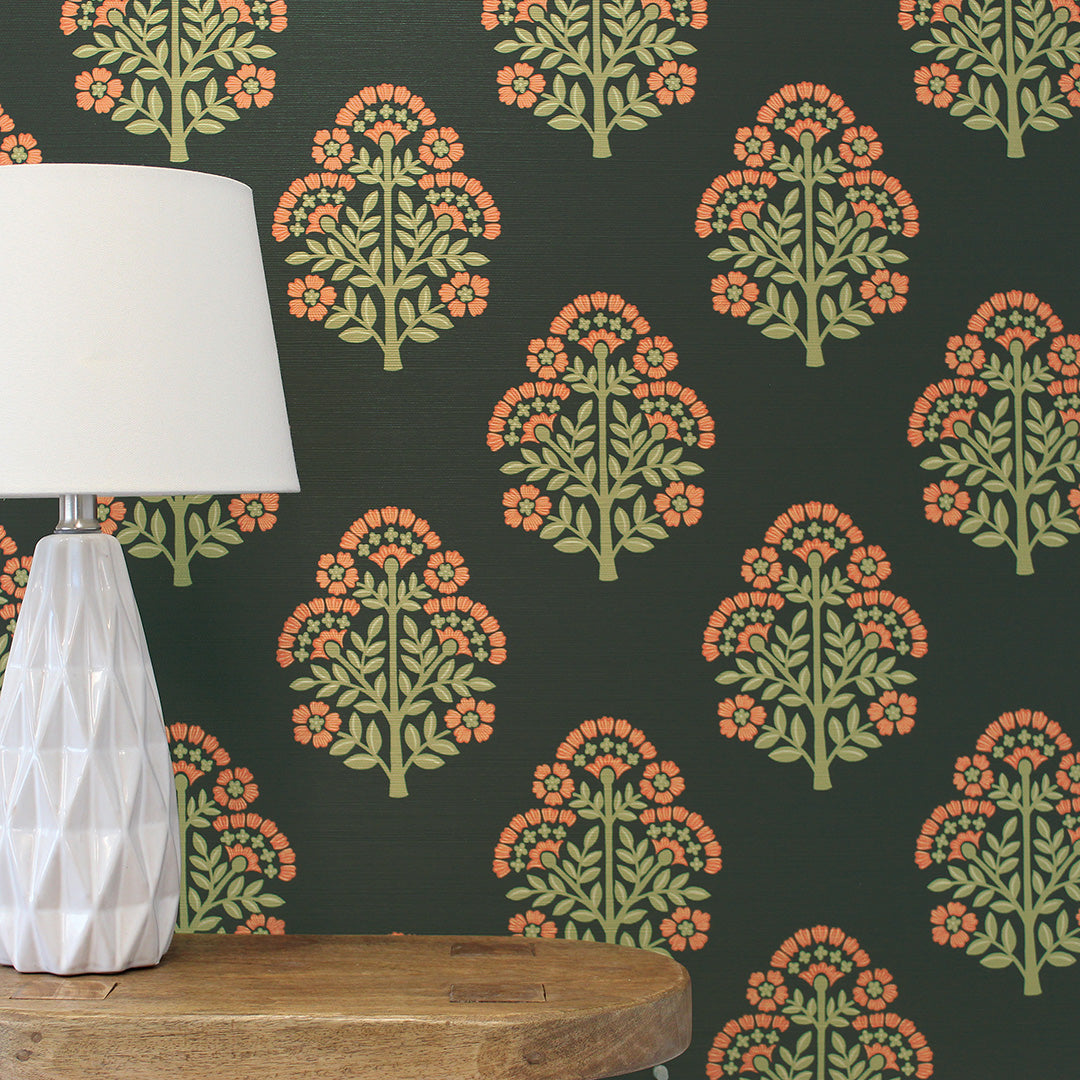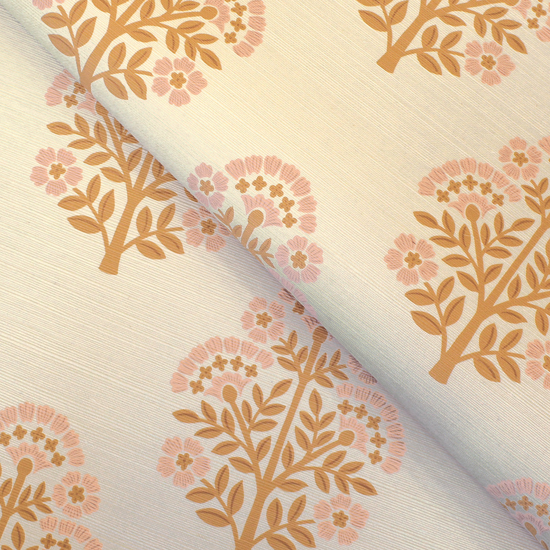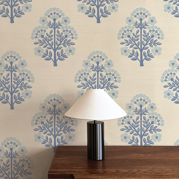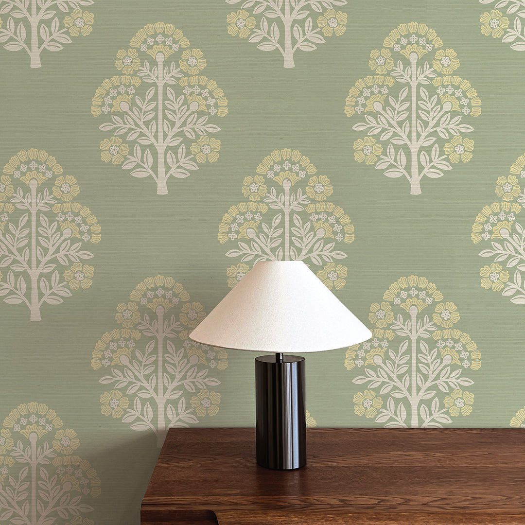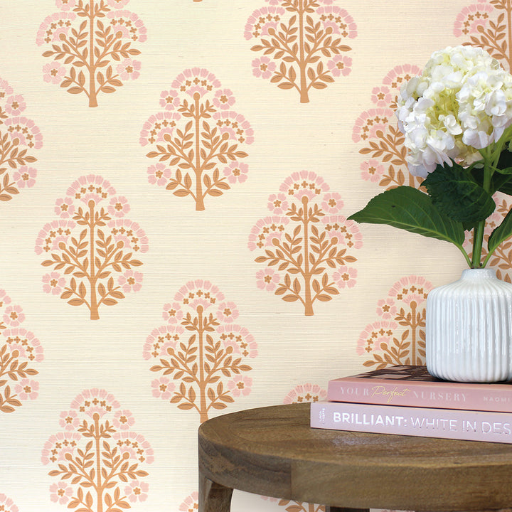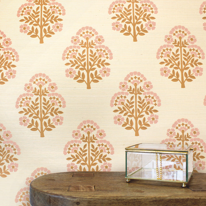 Block Floral Printed Authentic Grasscloth Wallpaper