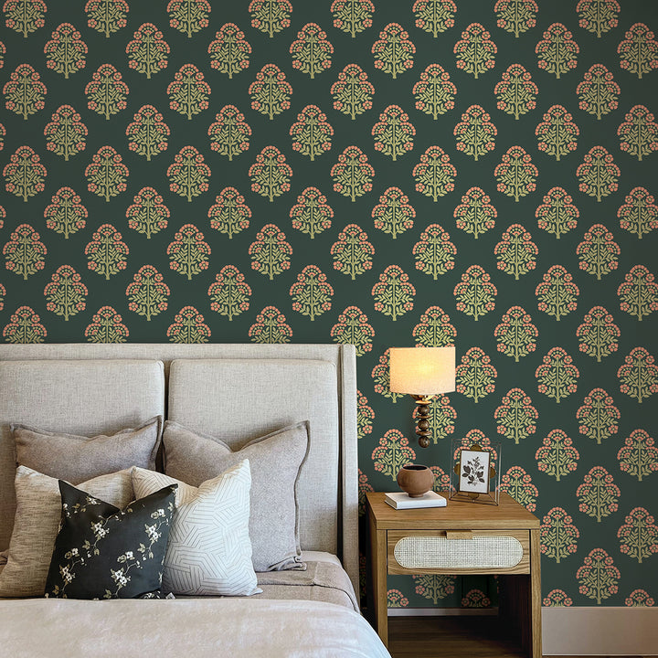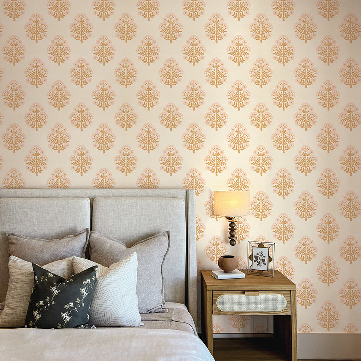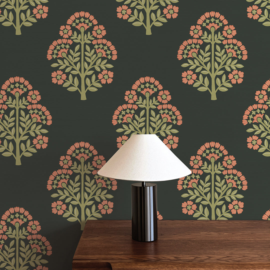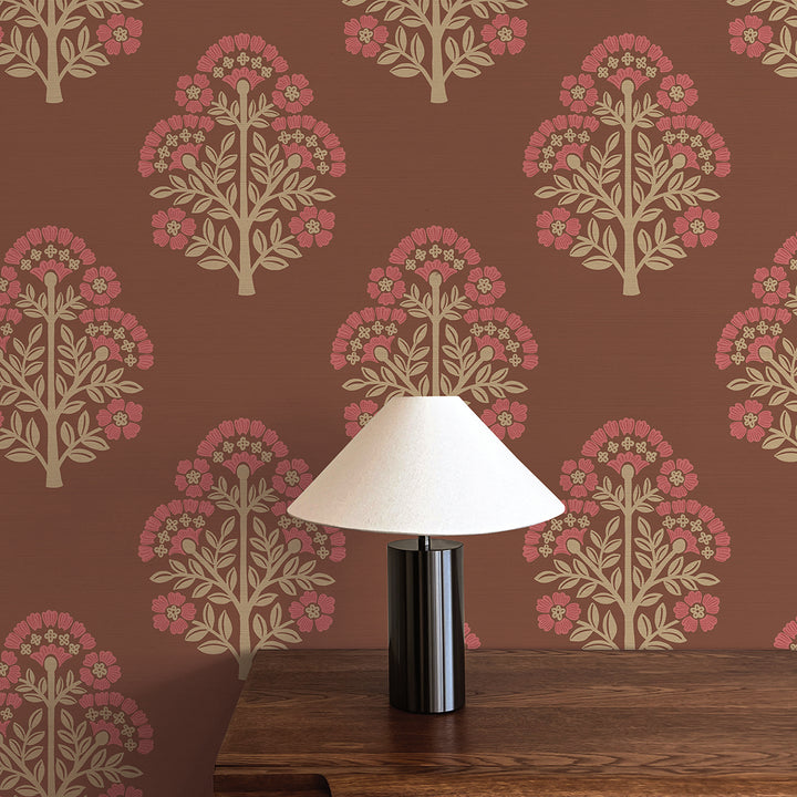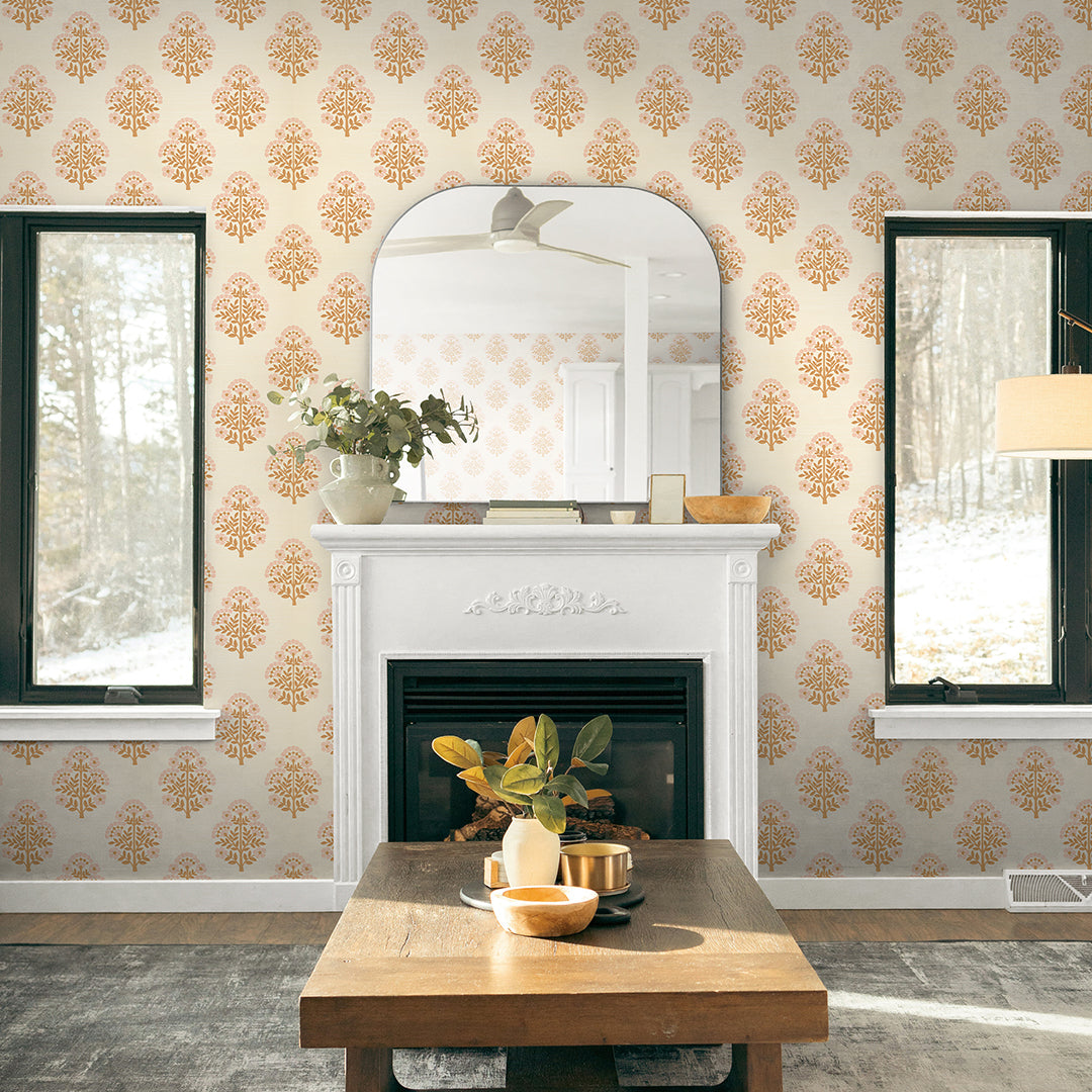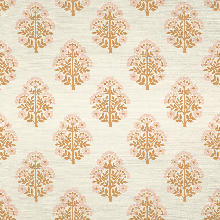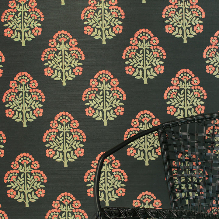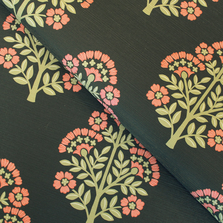 Block Floral Printed Authentic Grasscloth Wallpaper