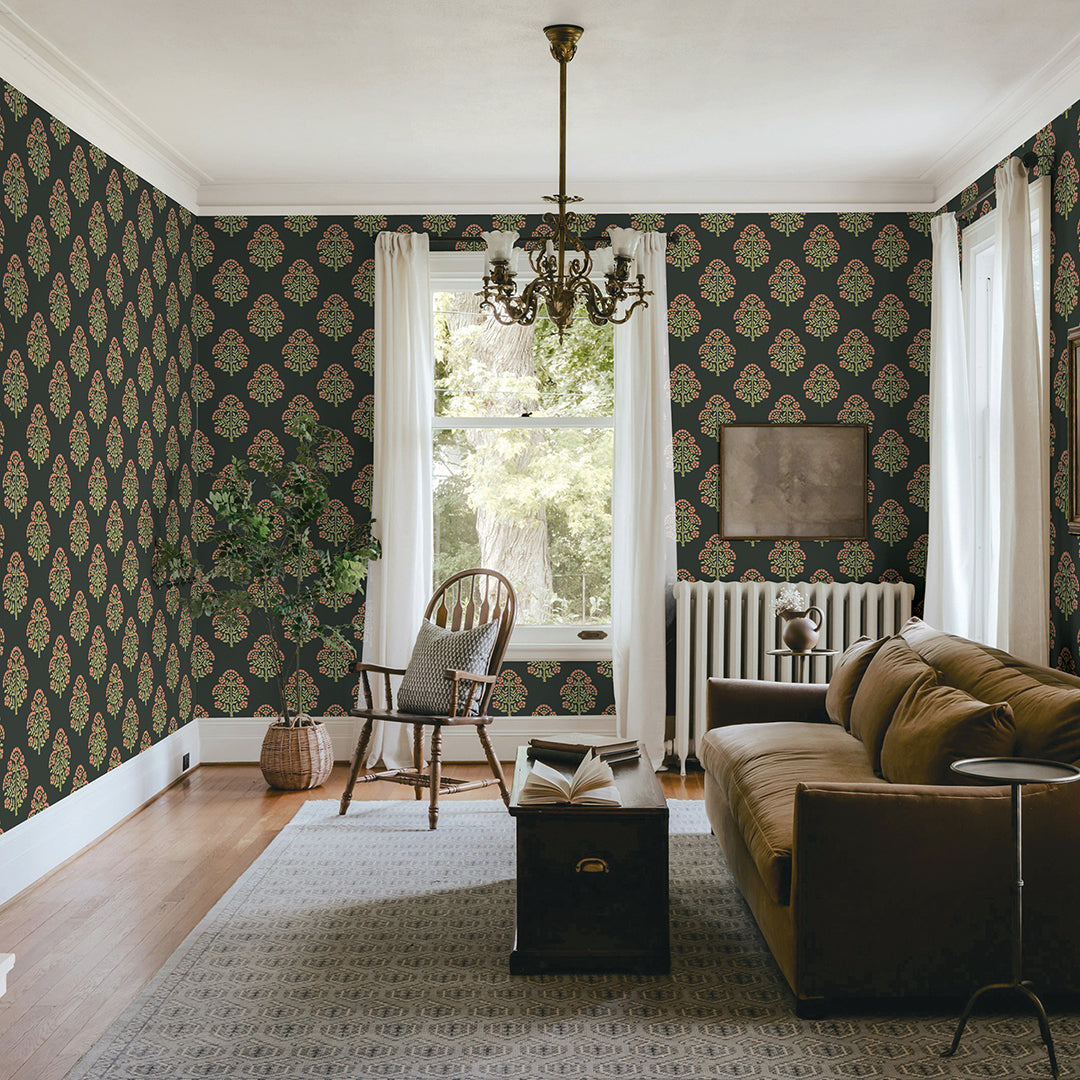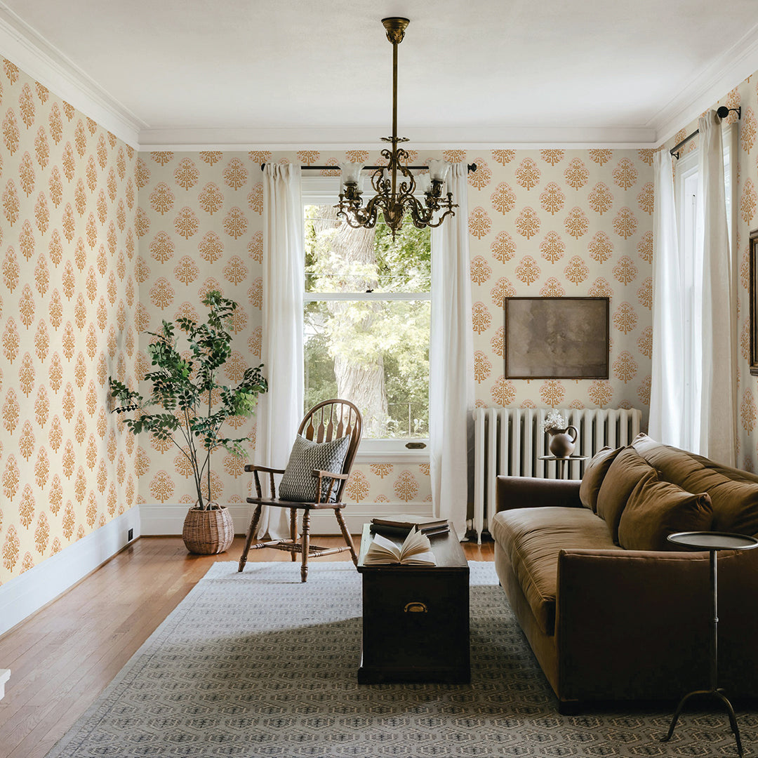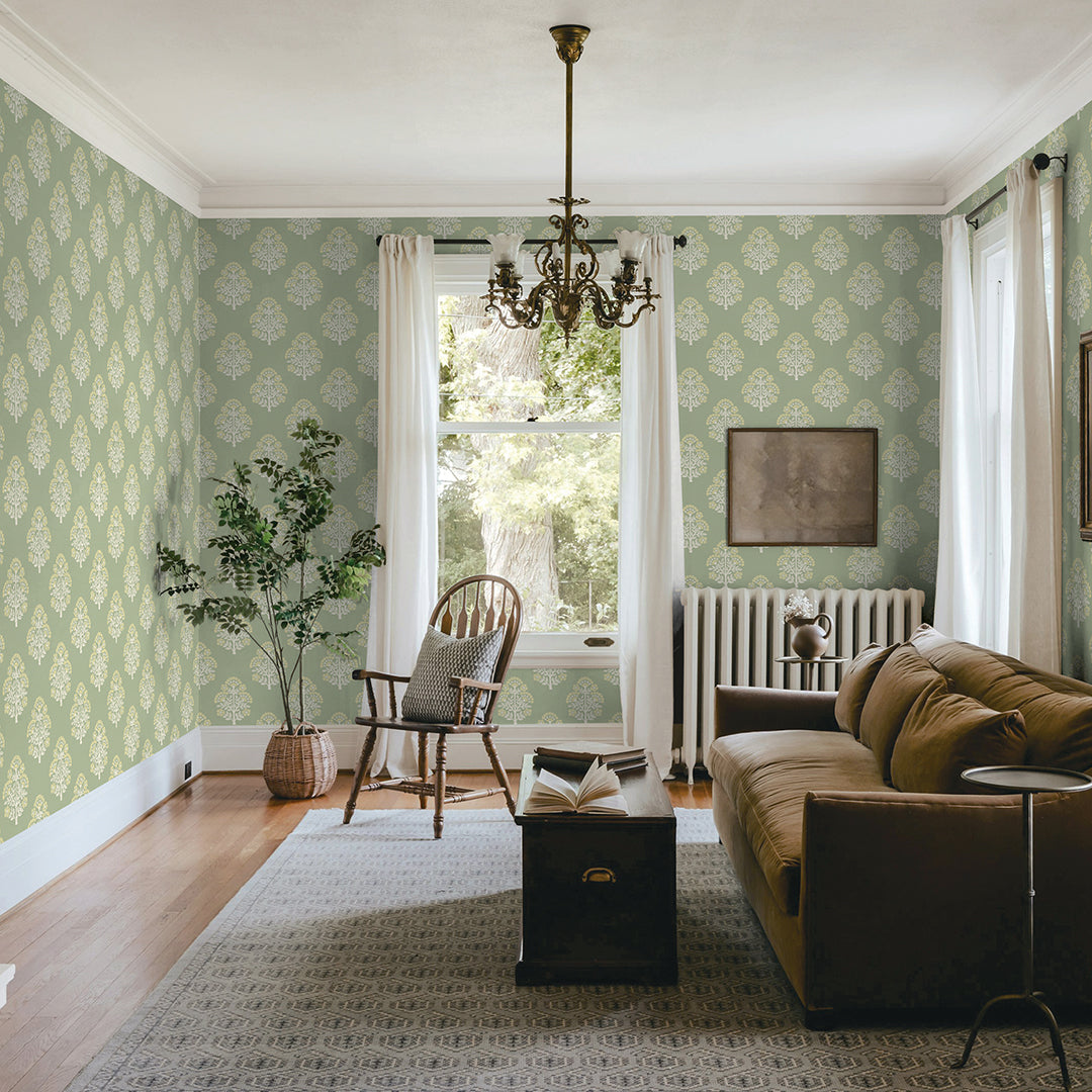 Printed in our studio with meticulous care, this vintage Floral Block print comes to life on our Sisal Authentic Grasscloth, a cream-toned natural base that enhances interiors with both texture and depth. The design features a traditional repeating floral block motif, evenly spaced to reveal the natural beauty and texture of the grasscloth beneath. By combining the organic durability of grasscloth with an added dimension of artistry, we bring you a wallcovering that is as timeless as it is versatile. Available in five refined color palettes all printed on a cream sisal grasscloth: rosewood, charcoal, meadow green, pale amber & sky blue.