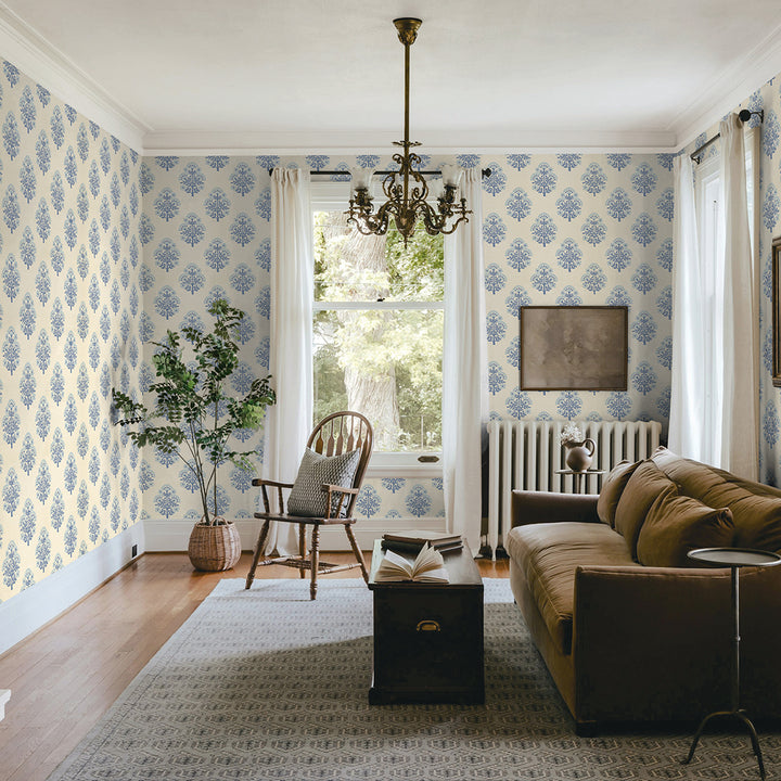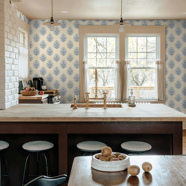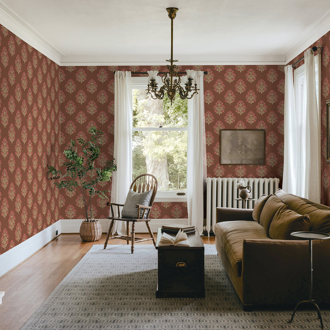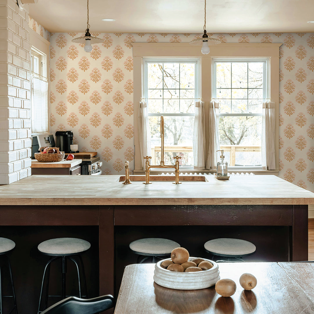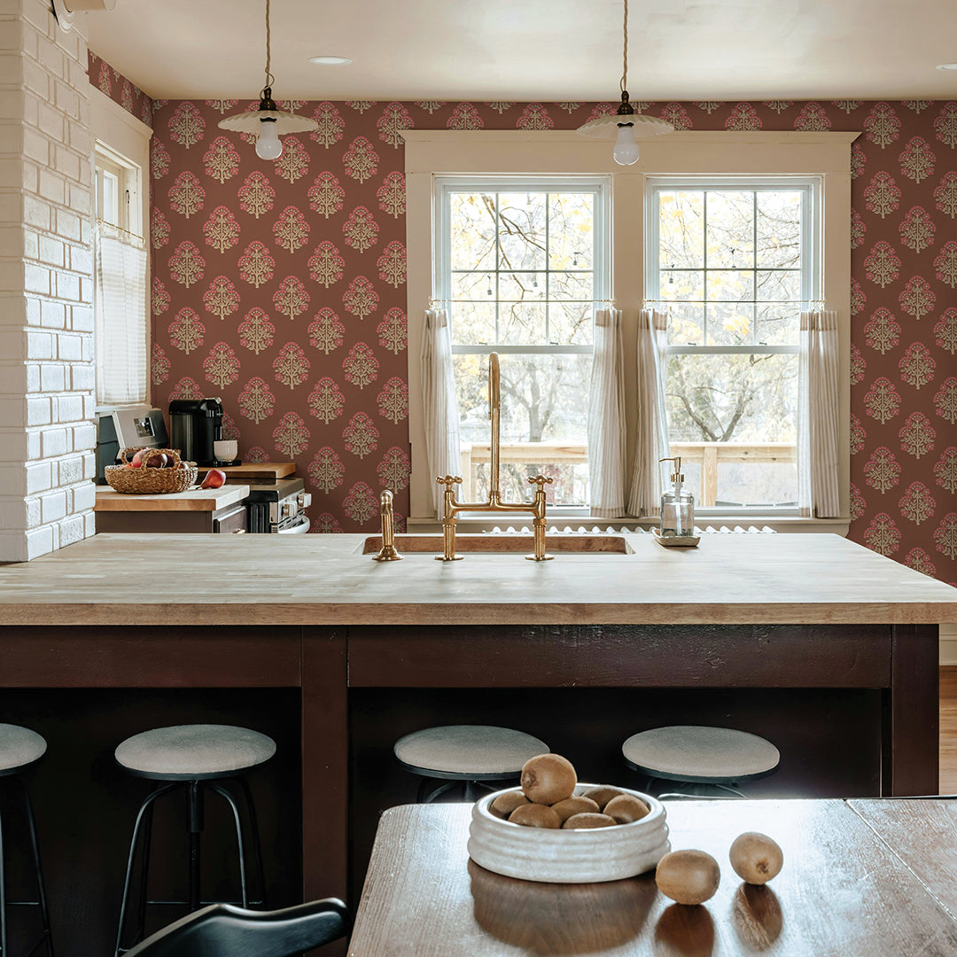 Printed in our studio with meticulous care, this vintage Floral Block print comes to life on our Sisal Authentic Grasscloth, a cream-toned natural base that enhances interiors with both texture and depth. The design features a traditional repeating floral block motif, evenly spaced to reveal the natural beauty and texture of the grasscloth beneath. By combining the organic durability of grasscloth with an added dimension of artistry, we bring you a wallcovering that is as timeless as it is versatile. Available in five refined color palettes all printed on a cream sisal grasscloth: rosewood, charcoal, meadow green, pale amber & sky blue.