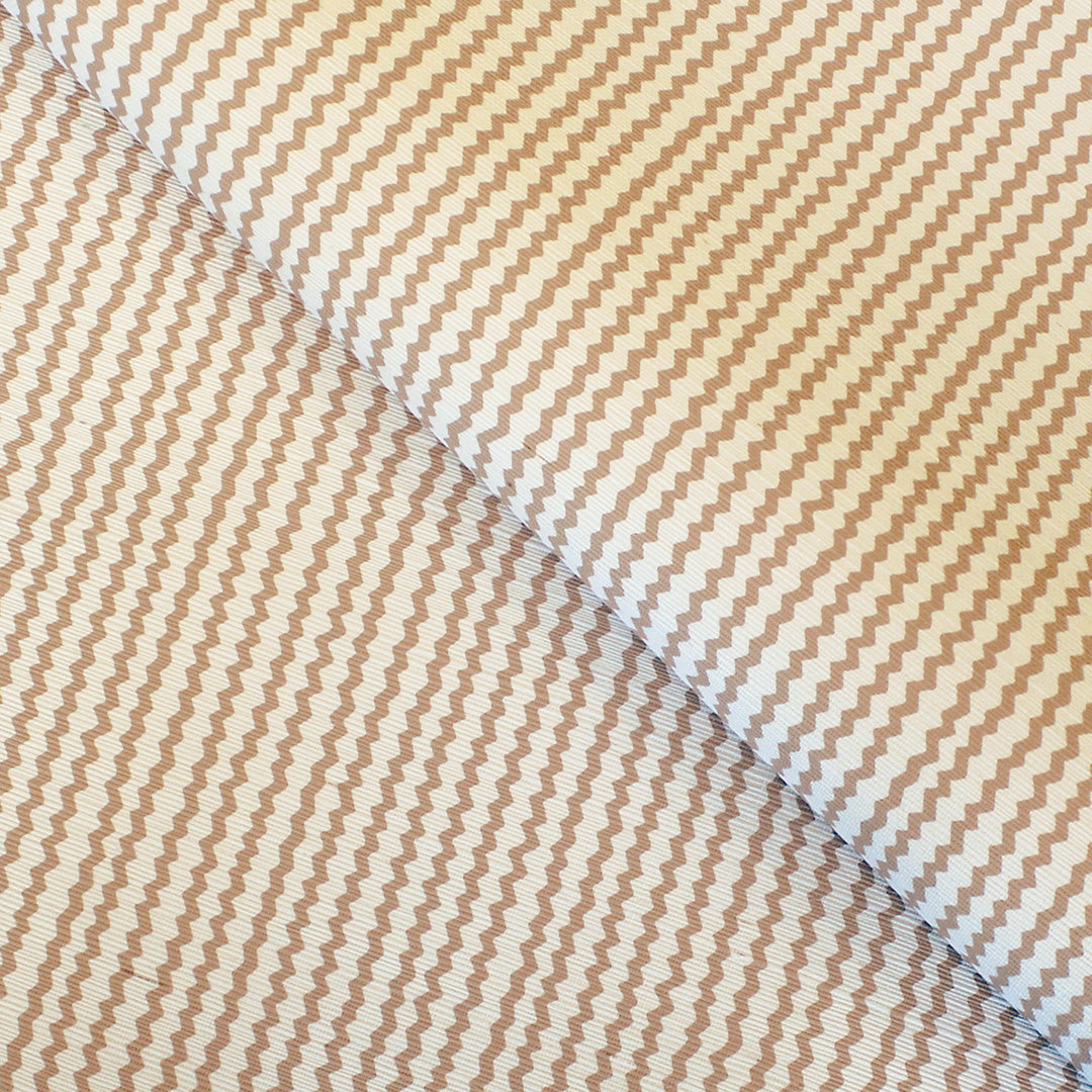 Printed in our studio with the utmost care, Rick Rack Revival is brought to life on our authentic sisal grasscloth, a rich, cream-toned natural base that enhances interiors with depth and texture. The inherent style of grasscloth is elevated with an added layer of state-of-the-art printing, merging organic versatility with a distinctive artistic touch.