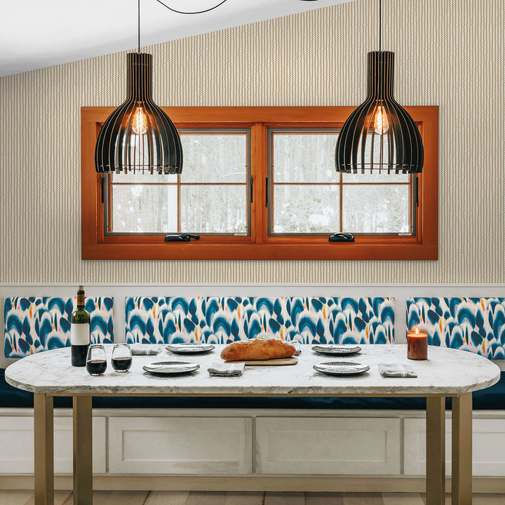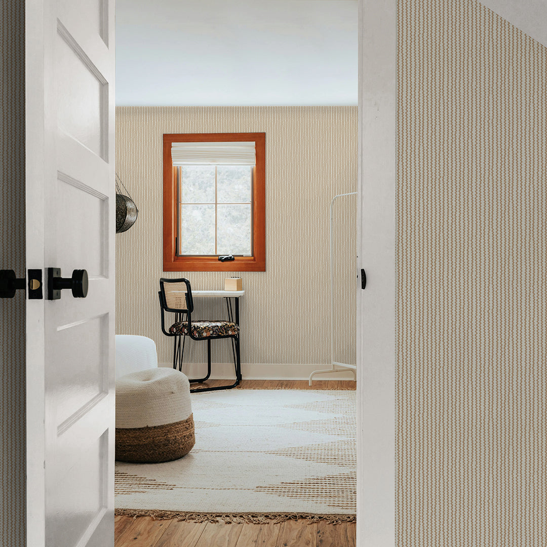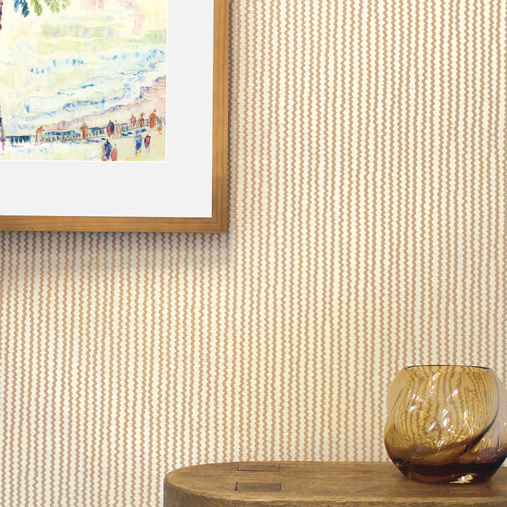 Infused with retro charm, our Rick Rack Revival Grasscloth brings a refined take on classic pattern design. Featuring a delicate rippling stripe in a small-scale repeat, this wallpaper captures the essence of vintage style with a rhythmic flow that adds both movement and nostalgia to any space.