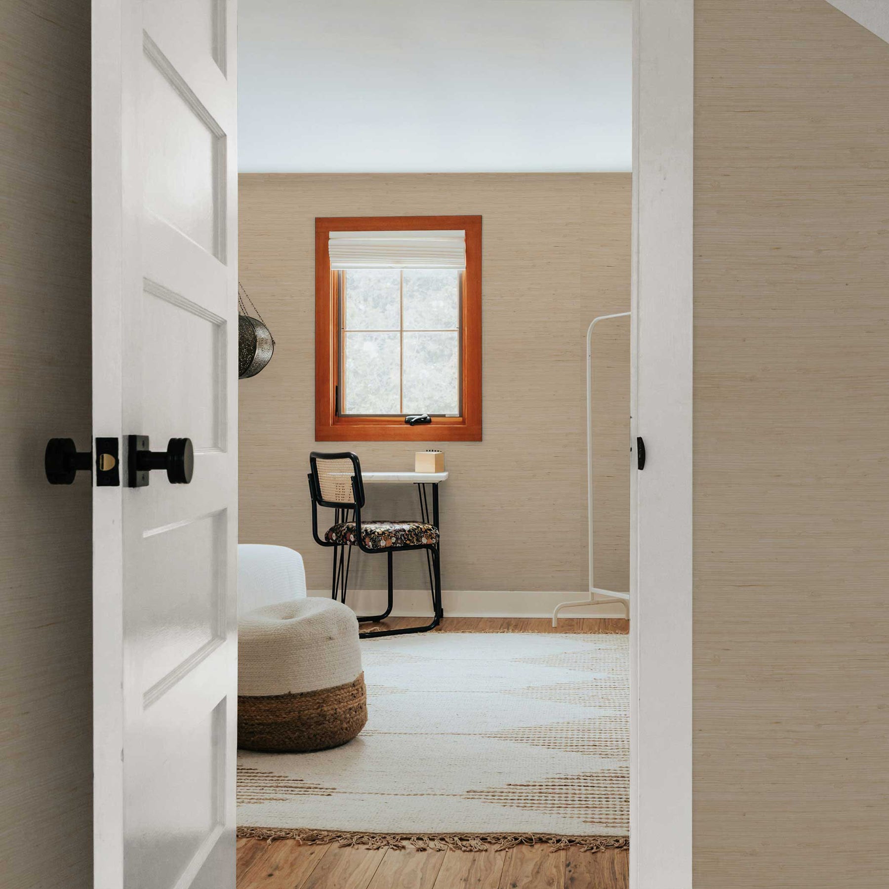 Unlike our peel and stick wallpaper, our authentic grasscloth wallpaper does not have a self-adhesive backing and requires wallpaper paste to stick to a wall or surface. The top benefits of authentic grasscloth wallpaper are its rich and natural materials, high-end textured look, and timeless design appeal.