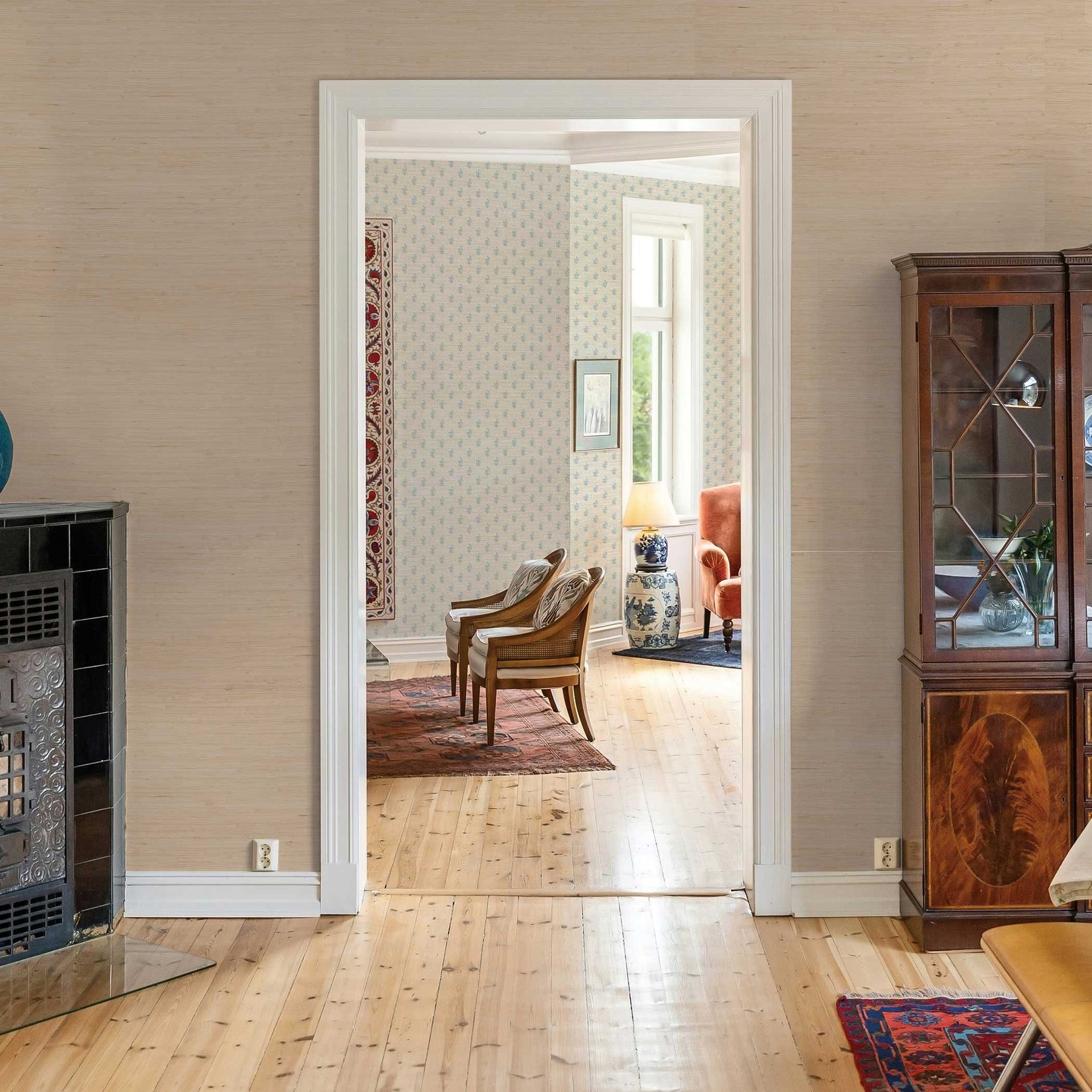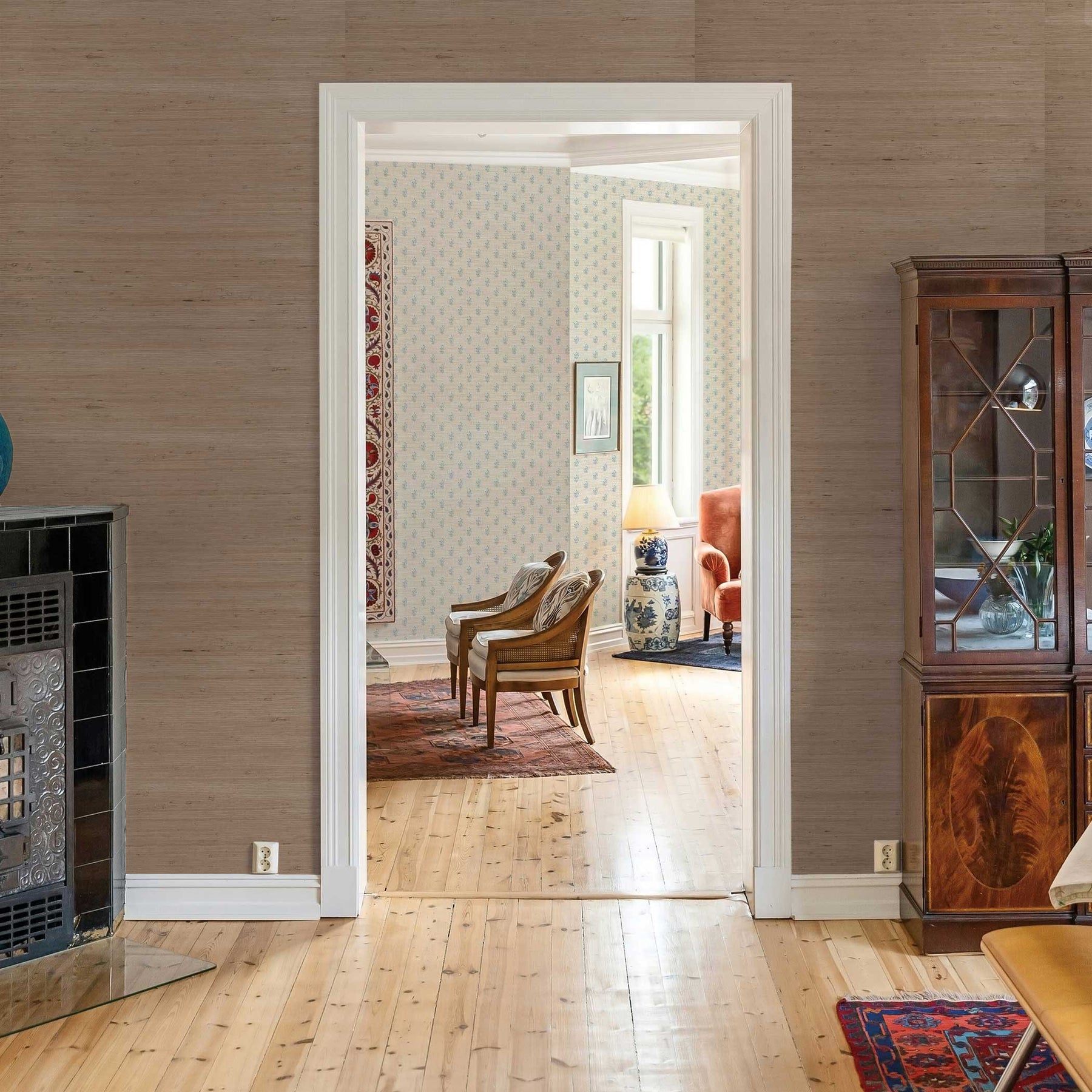 With its distinctive weave and tonal properties, this wallpaper pairs beautifully with warm woods, leather, and tactile fabrics like linen or textured upholstery, creating a space that feels earthy and layered. Available in four colorways: Light Natural, Khaki, Taupe, and Deep Sea Blue. This design brings depth and quiet sophistication to any room.