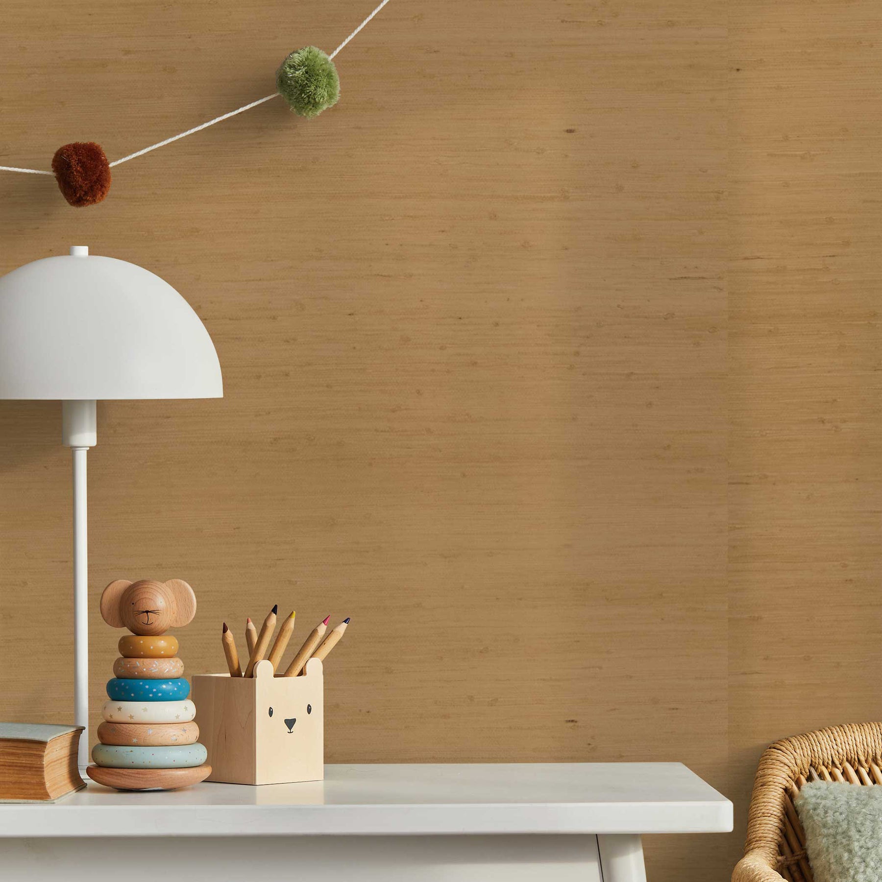 Unlike our peel and stick wallpaper, our authentic grasscloth wallpaper does not have a self-adhesive backing and requires wallpaper paste to stick to a wall or surface. The top benefits of authentic grasscloth wallpaper are its rich and natural materials, high-end textured look, and timeless design appeal.