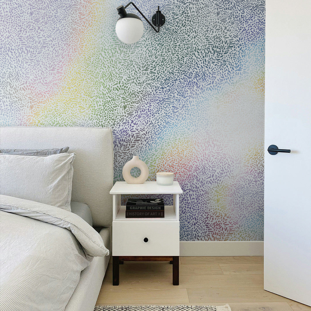 The design’s soft brushstroke pattern creates a bright and expressive atmosphere, adding energy and personality to any room. Perfect for those seeking a unique, artistic touch, this wallpaper brings a refined, contemporary look to any space.