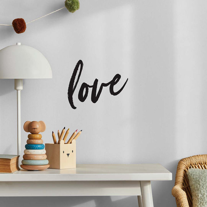 Emulating the look of a handwritten love note, this versatile wall art is printed in a brush script font. Built to last, this love wall decal in a black ink color will never fade away, making it a perfect decor choice for bridal showers, weddings, special occasions and more.