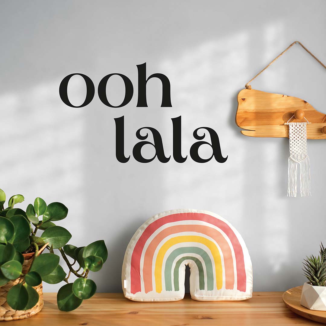 The Ooh La La wall decal set from Tempaper with the words "ooh la la" written in black.